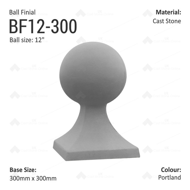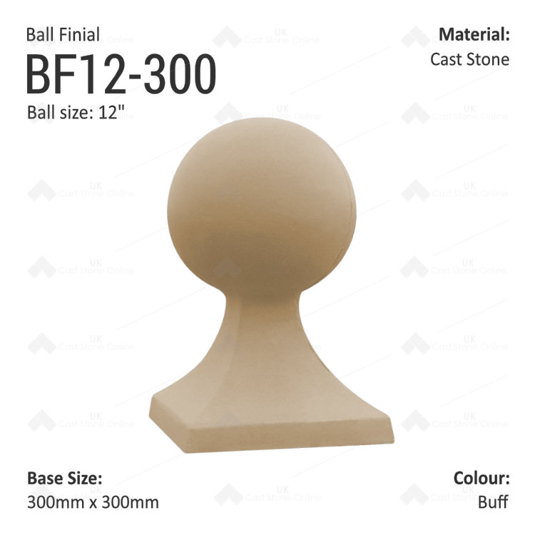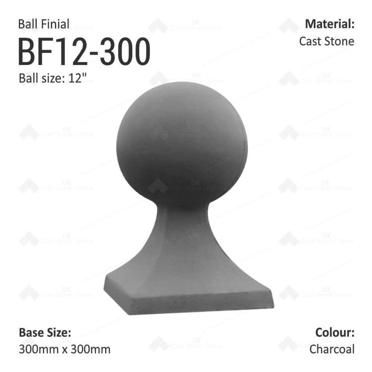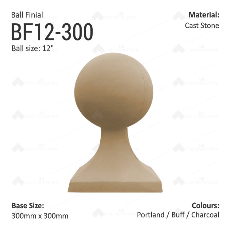 Decorate your home, fence, gate piers, gateways and entranceway with this 12″ ball finial, made of cast stone. This finial is 12″ high and available in buff, natural Portland, and charcoal colour. Buy this architectural element now and you will receive it right to your door to make your residential or commercial property more attractive.