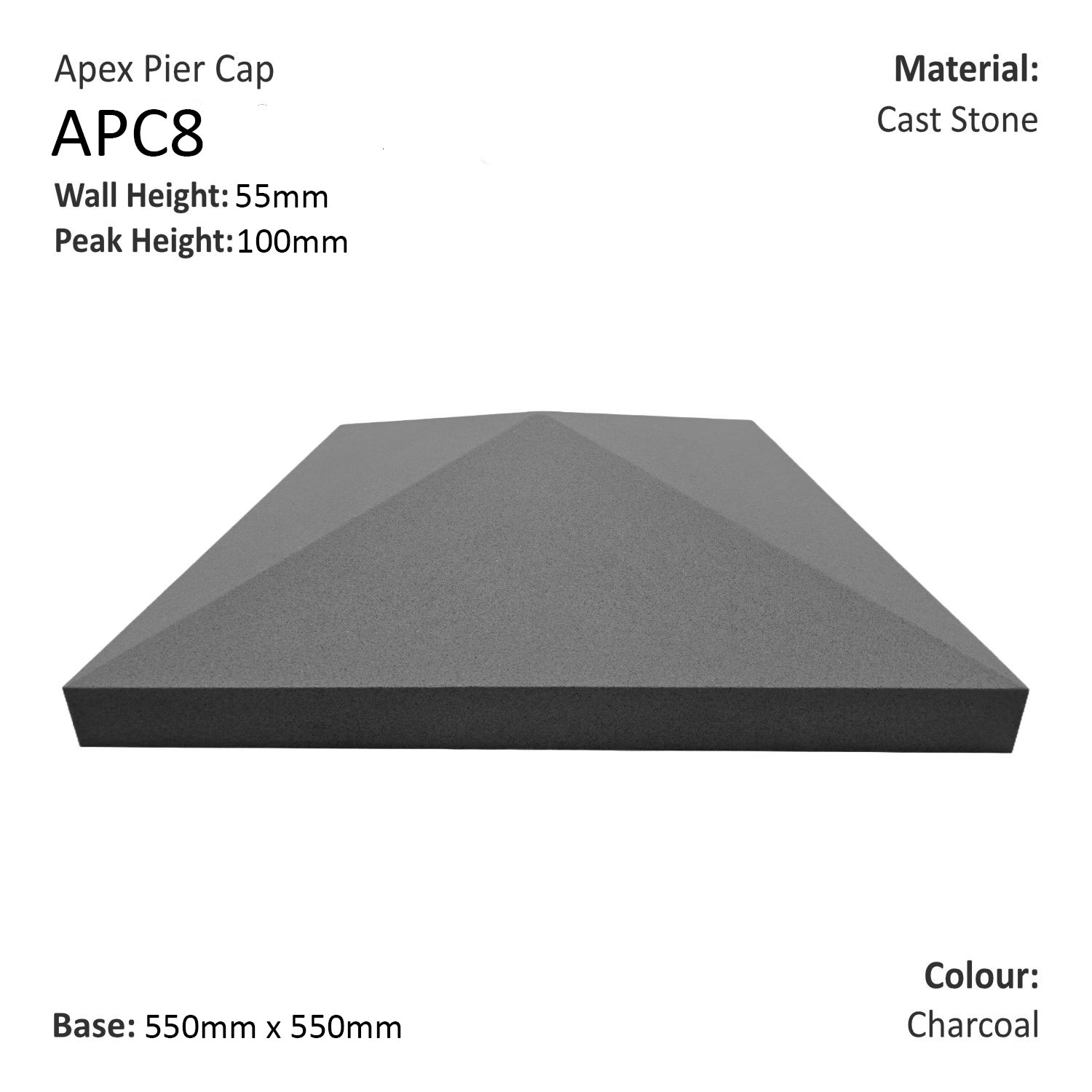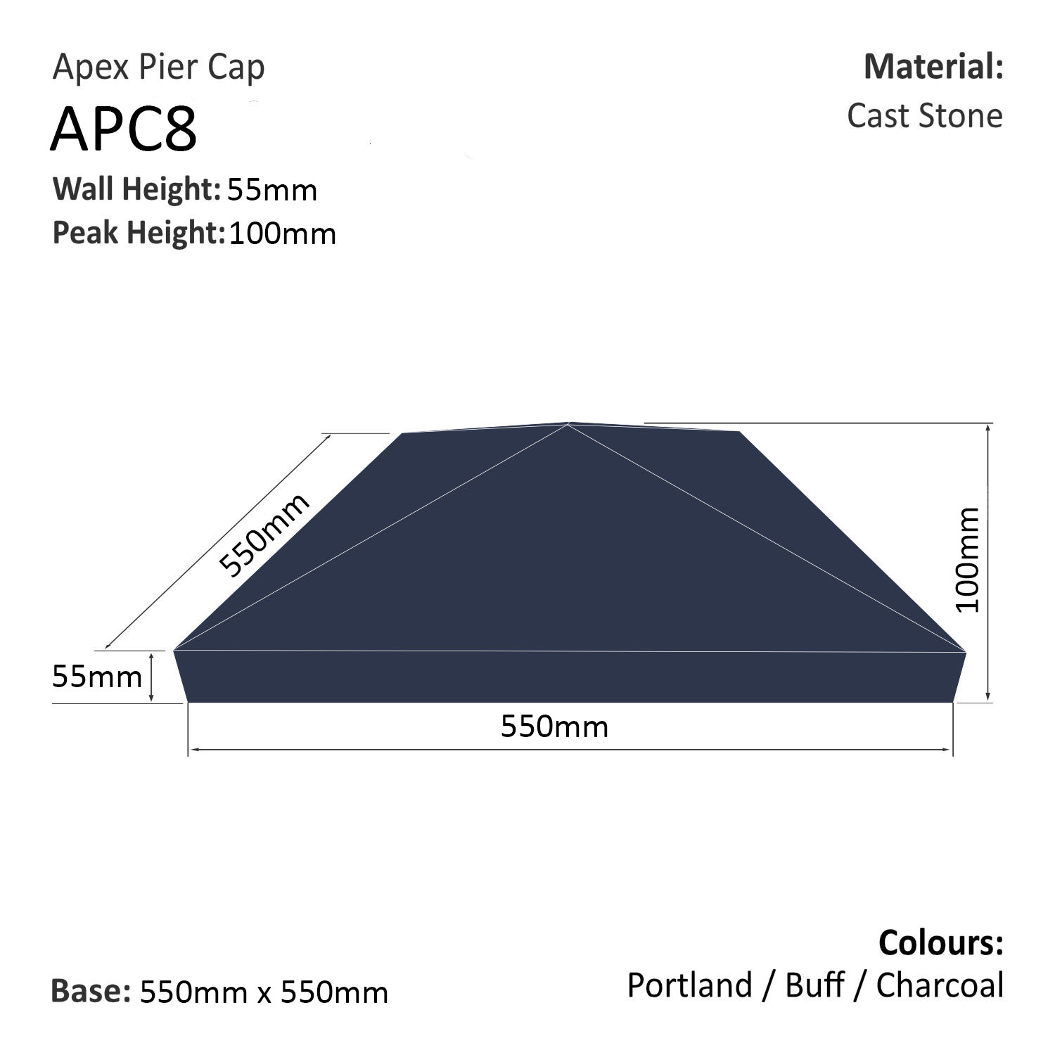 Pier Caps Apex add a perfect finishing touch to your brick pillar and gate post. This decorative cast stone apex pier cap from UK Cast Stone measures 550 mm x 550 mm and is available in three colours (Buff, Natural Portland and Charcoal).