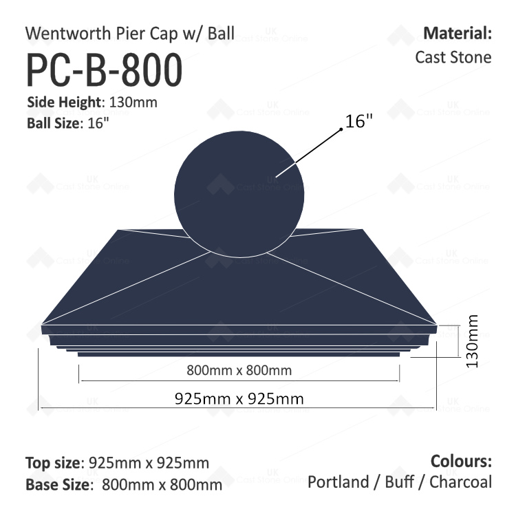 Wentworth Pier Cap with 16″ ball – 800mm x 800mm
